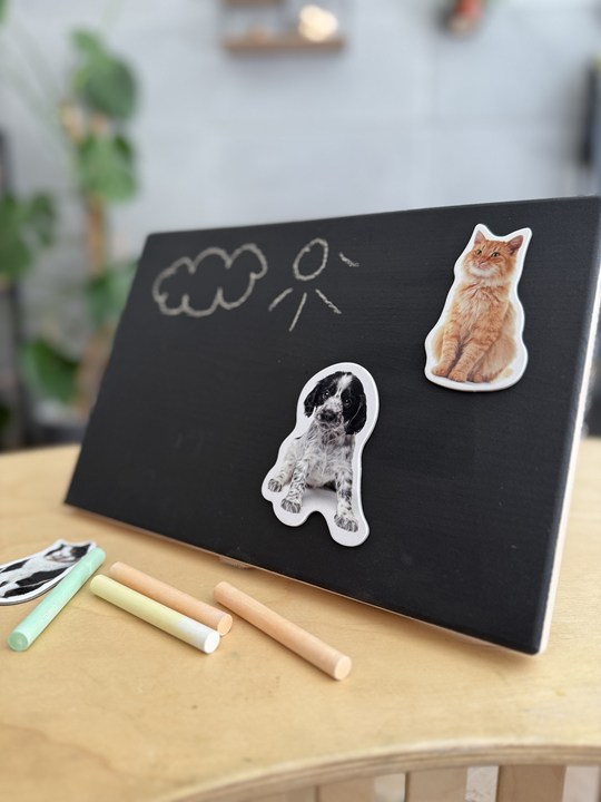Ved å åpne stativet med borrelås og plassere nettbrettet f.eks. på et bord, får vi et brett for fri tegning og feste magneter. Dette multifunksjonelle leketøyet er en vei ut foran de prangende elektroniske dingsene som barna våre fortsatt vil ha tid til å glede seg over i fremtiden.